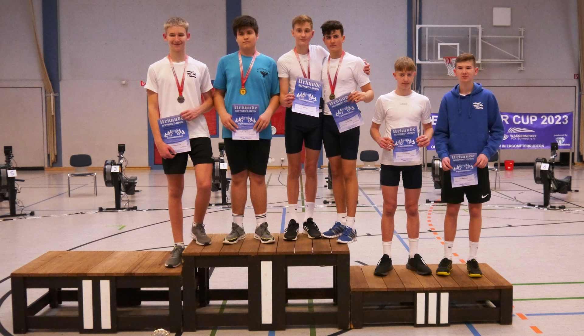 Abschluss des Tages waren die unterschiedlichen Viererrennen. Hier stellte sich eine Mannschaft vom Gauß-Gymnasium Schwedt, mit Nele Höppner, Marwin Wendt, John Lienert und Maximilian Dreydorff gegen die hohen Favoriten aus Neuruppin. Trotz Zeitgutschrift und vollem körperlichen Einsatz reichte es am Ende leider nicht zum Sieg.