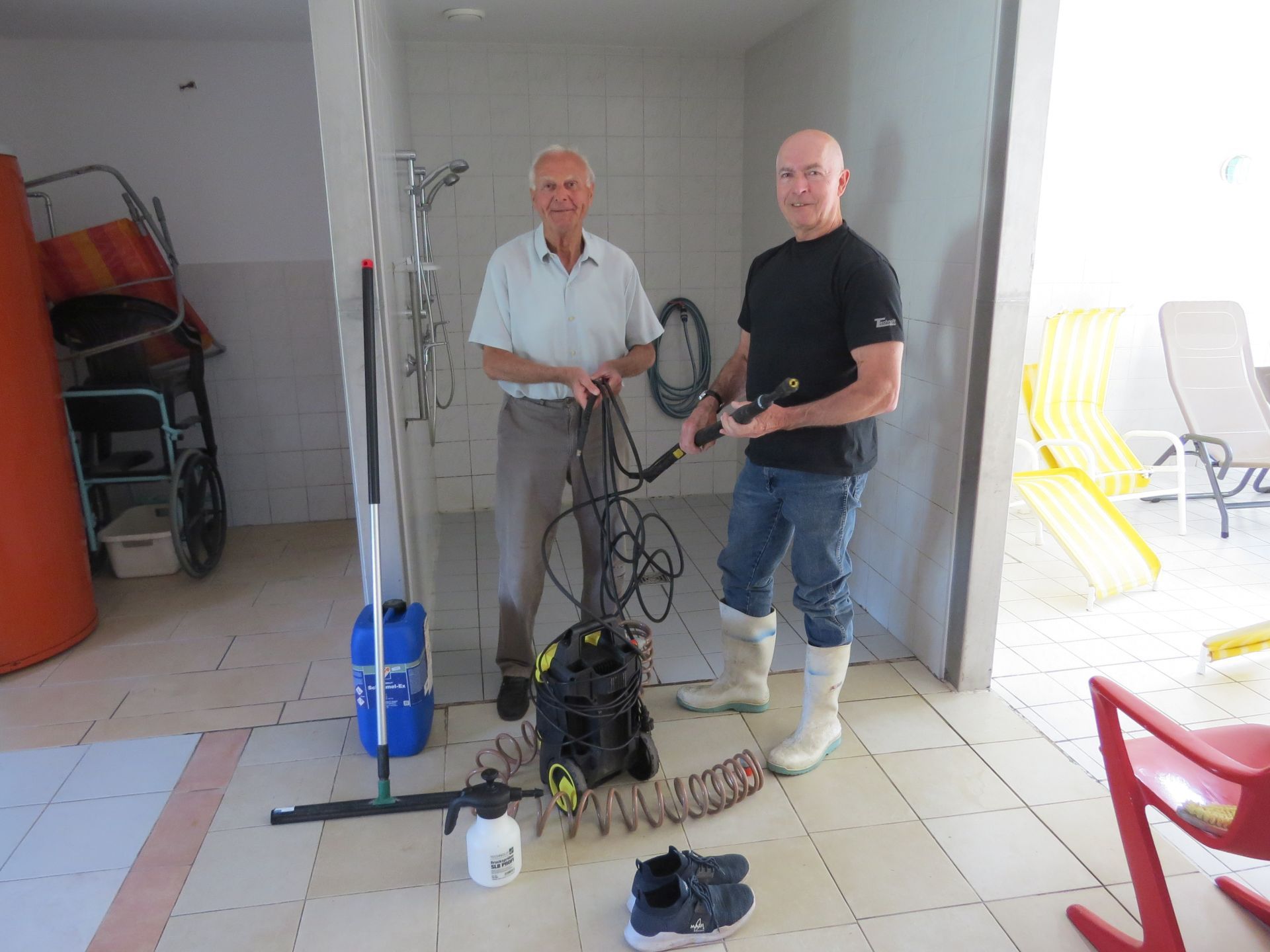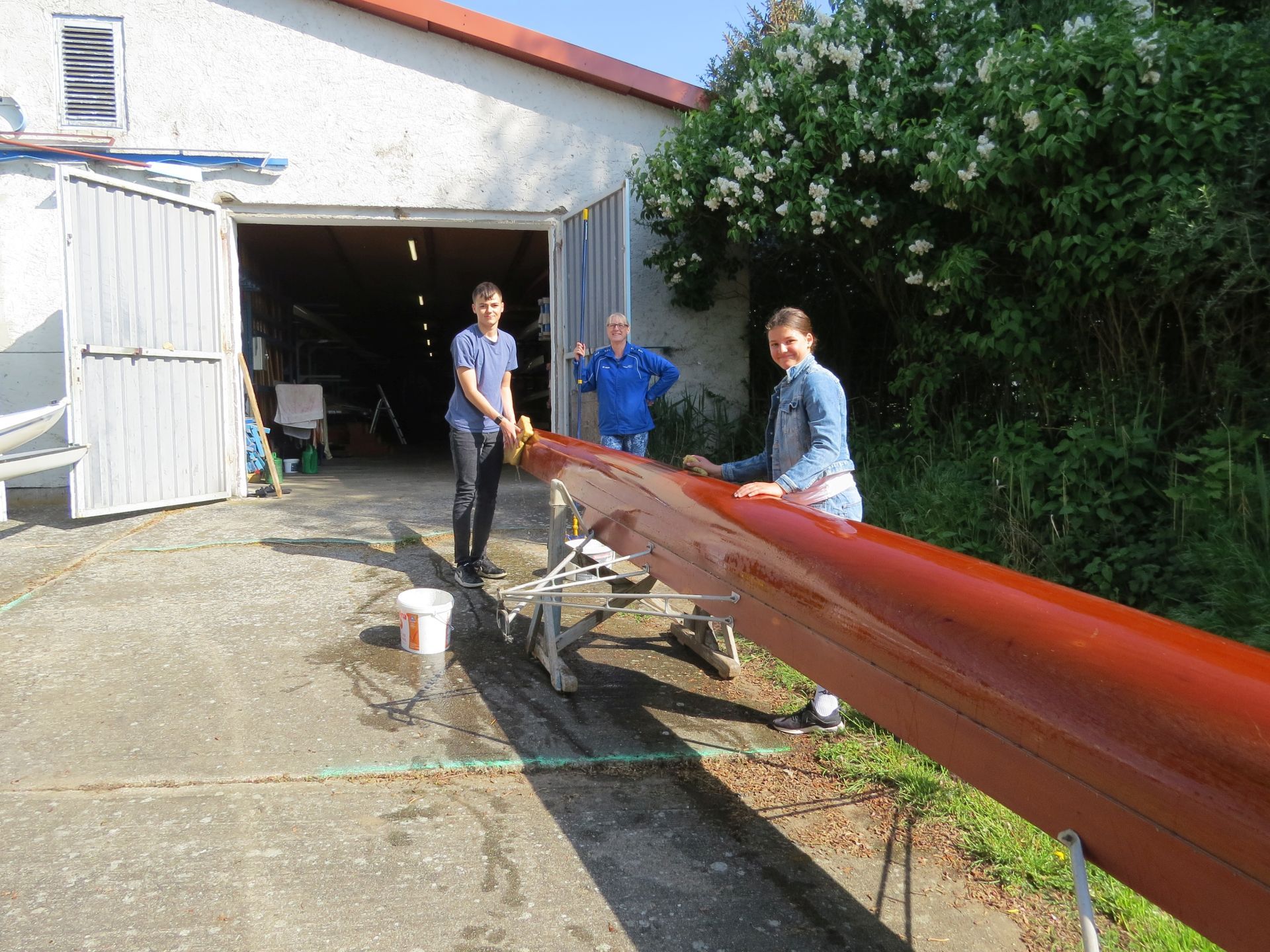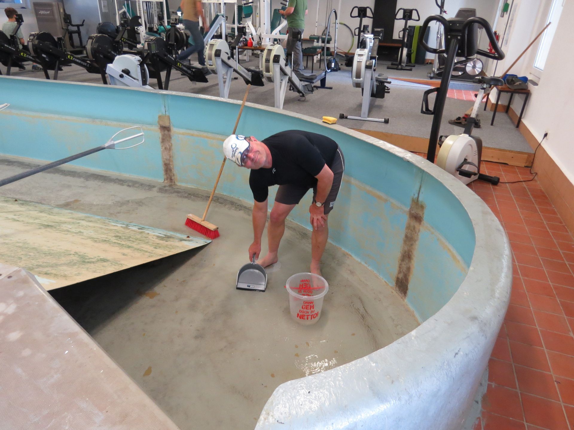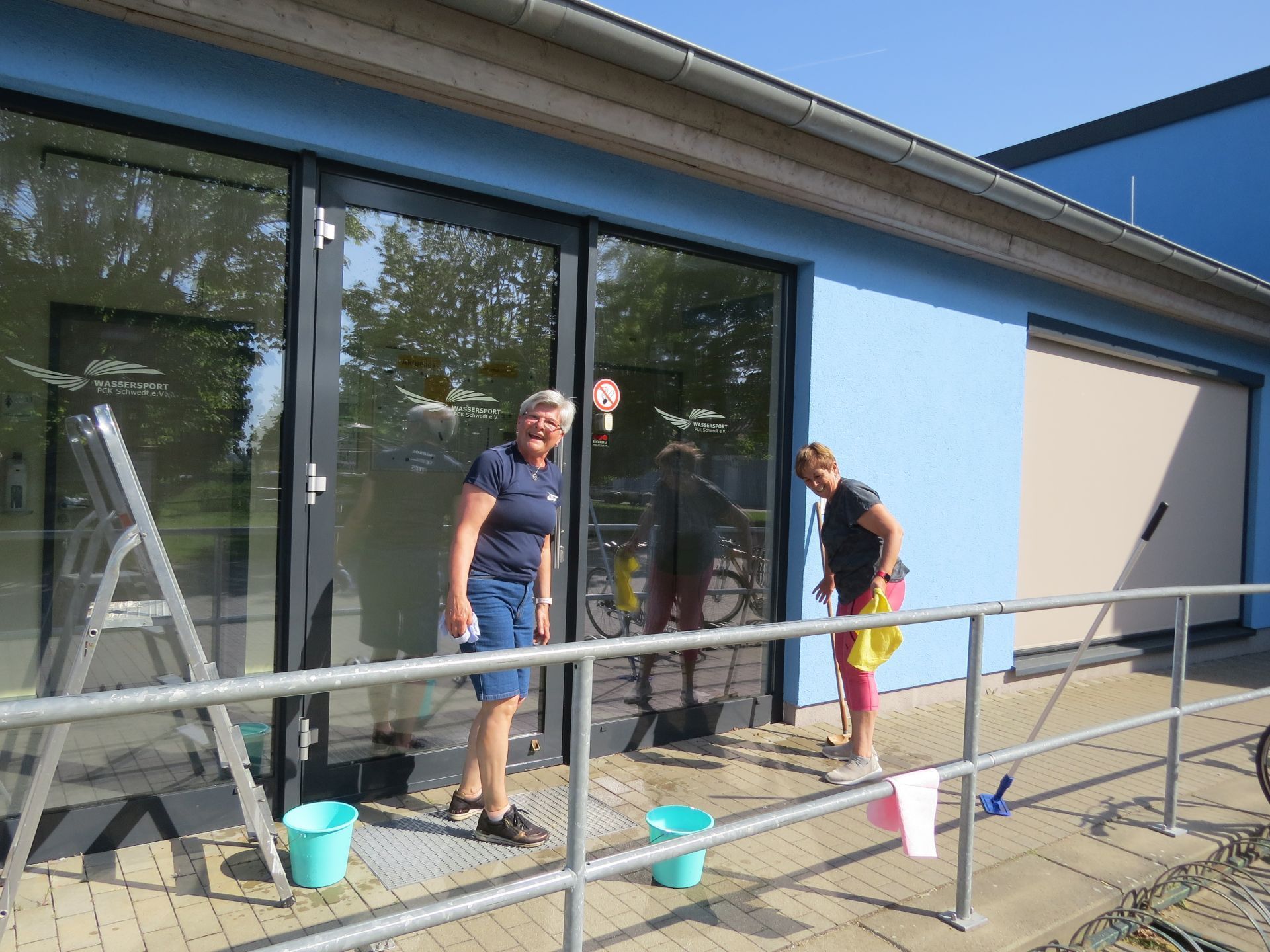 Mitglieder der Abteilung Rudern warteten die Ruderergometer und widmeten sich dem Frühjahrsputz in ihrer Bootshalle sowie der Reinigung des Ruderbeckens. Reinigungsarbeiten erfolgten auch in der Vereinssauna und im Vereinsclubhaus. Das Grillhaus wurde für die geplante Sanierung der Dachkonstruktion vorbereitet. Erste Stühle für das Vereinsclubhaus wurden aufgearbeitet und mit einem Probeanstrich versehen. Weitere Bodendecker wurden am Clubhaus und an der Infotafel gepflanzt.