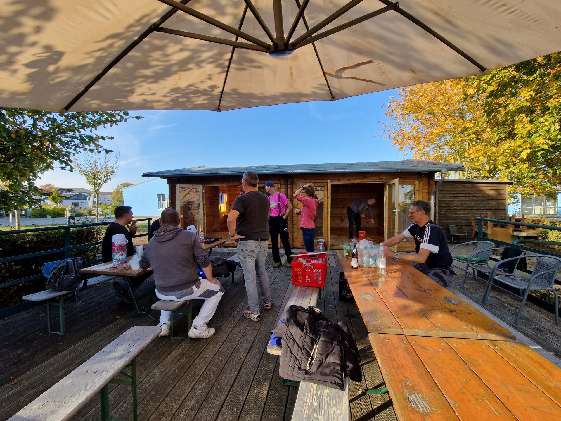 Beim Oktober-Arbeitseinsatz trafen sich 20 Sportfreunde aus den Gruppen Sauna, Allgemeinsport Motorboot und Rudern. Jens und Achim hatten den Einsatz wieder sehr gut vorbereitet. Eine Gruppe um Stephan Grüneberg malerten in den Umkleideräumen der Frauen. Sportfreunde der Saunagruppe brachten die Sauna und den Badeseinstieg auf Vordermann. Im Vereinsclubhaus erfolgten die letzten Arbeiten am Fußboden und an der Beleuchtung. Drumherum wurden die Außenanlagen hergerichtet. Bei bestem Herbstwetter konnten alle anschließend die Terrasse genießen.