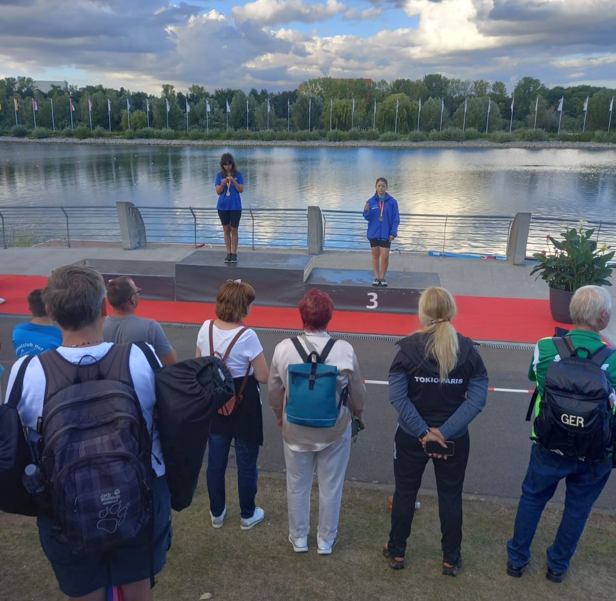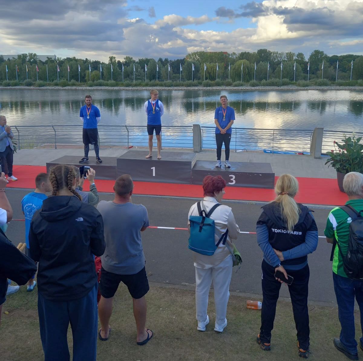 Nach der Siegerehrung wurde der neu geschaffene „Deutschland Cup“ ausgewertet und die Athleten geehrt. Dabei bekommen die Kanuten bei verschiedenen Regatten für ihre Ergebnisse Punkte. In der Damenkonkurrenz gewann Leona den goldenen Pokal. Joice und sie hatten die gleiche Punktzahl, aber der höherwertige Sieg bei der DM gab für Leona den Ausschlag. Sophia wurde mit dem bronzenen Pokal geehrt.