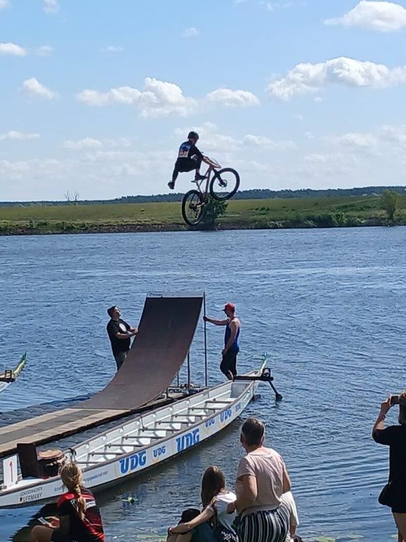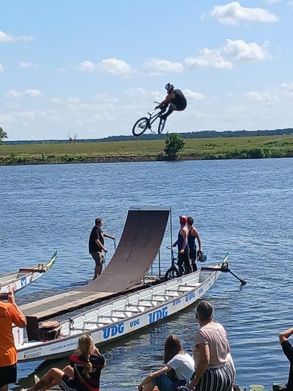 Ein großer Dank geht auch an die DLRG für die Absicherung auf dem Wasser sowie an die Jungs von der „Trickfabrik Schwedt e.V.“ für ihr unterhaltsames Rahmenprogramm mit den waghalsigen Sprüngen ins Wasser.
