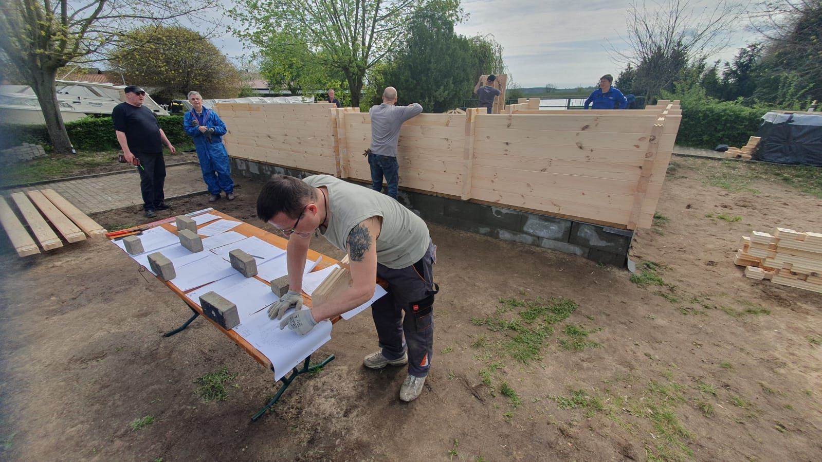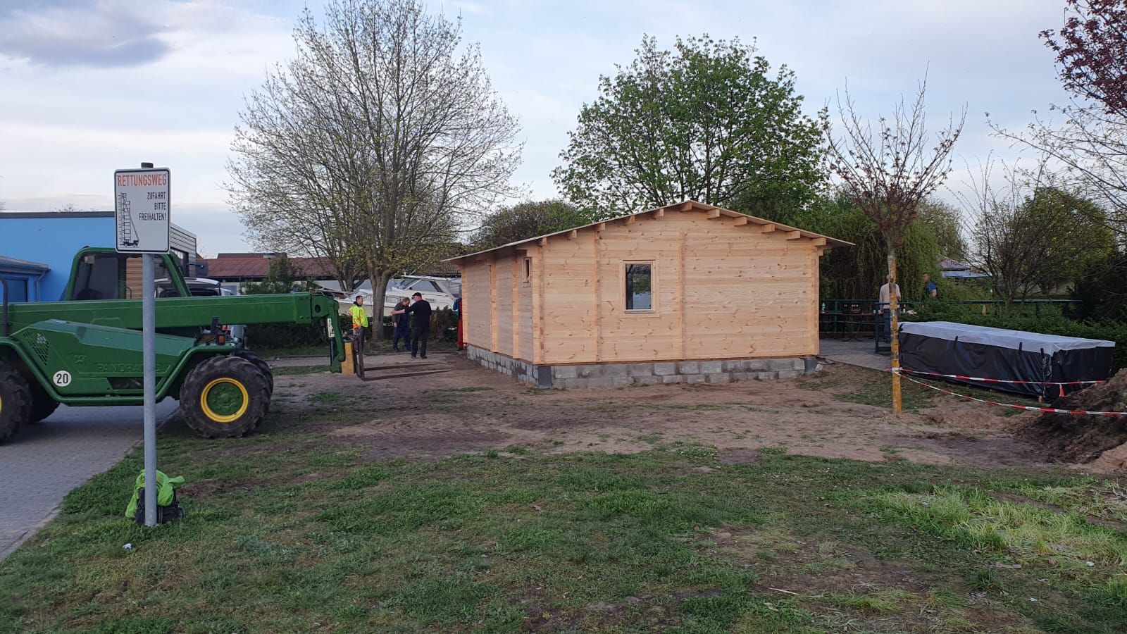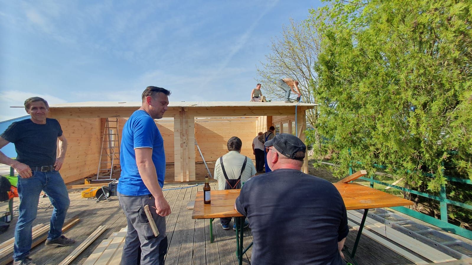 Das Haus steht. Danke. Am 6. April wurde so fleißig gearbeitet, dass der Einsatz am 7. April entfallen konnte. Diesmal spielte sogar das Wetter mit.