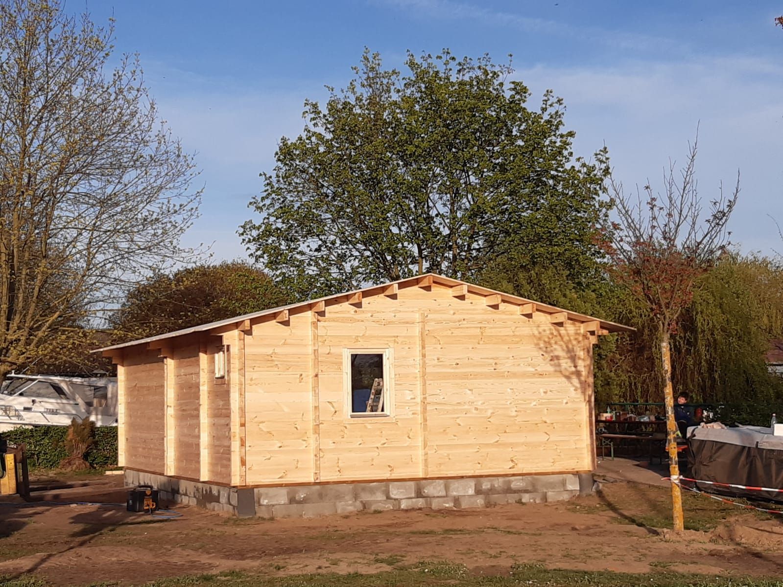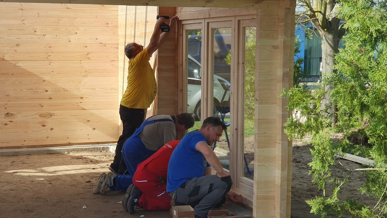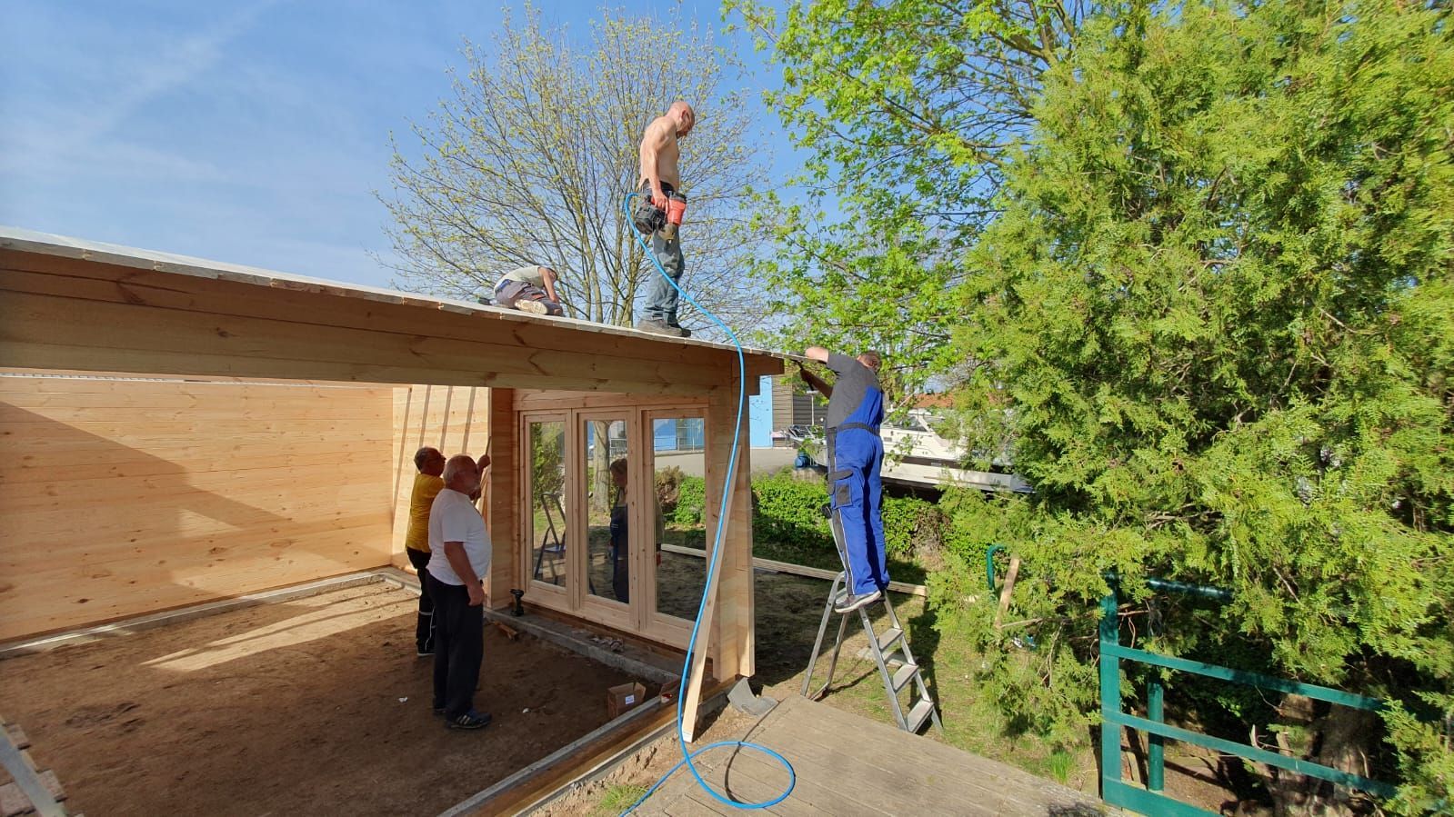 Das Haus steht. Danke. Am 6. April wurde so fleißig gearbeitet, dass der Einsatz am 7. April entfallen konnte. Diesmal spielte sogar das Wetter mit.