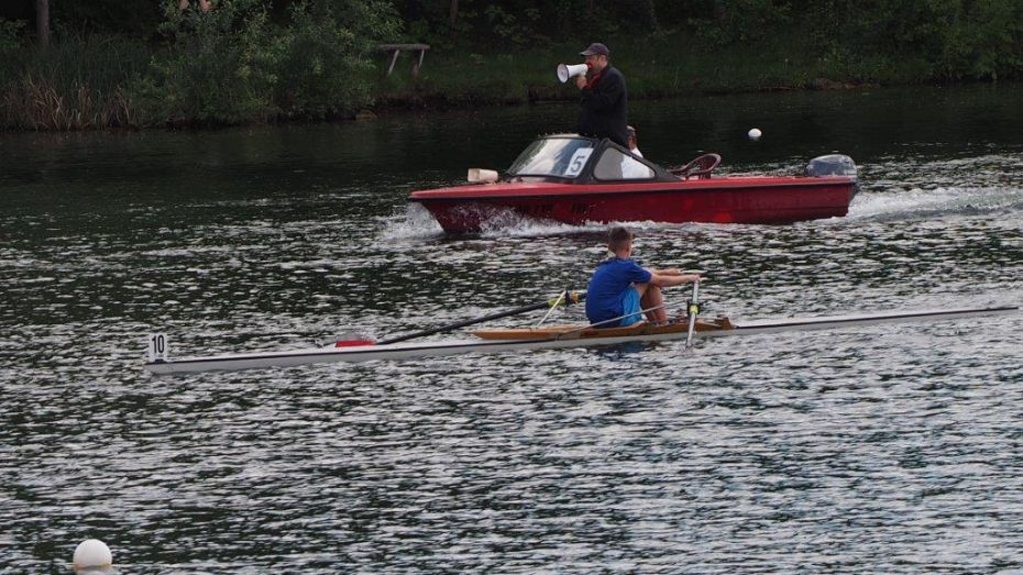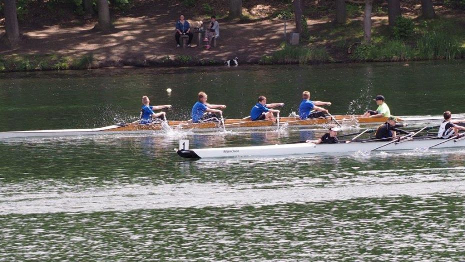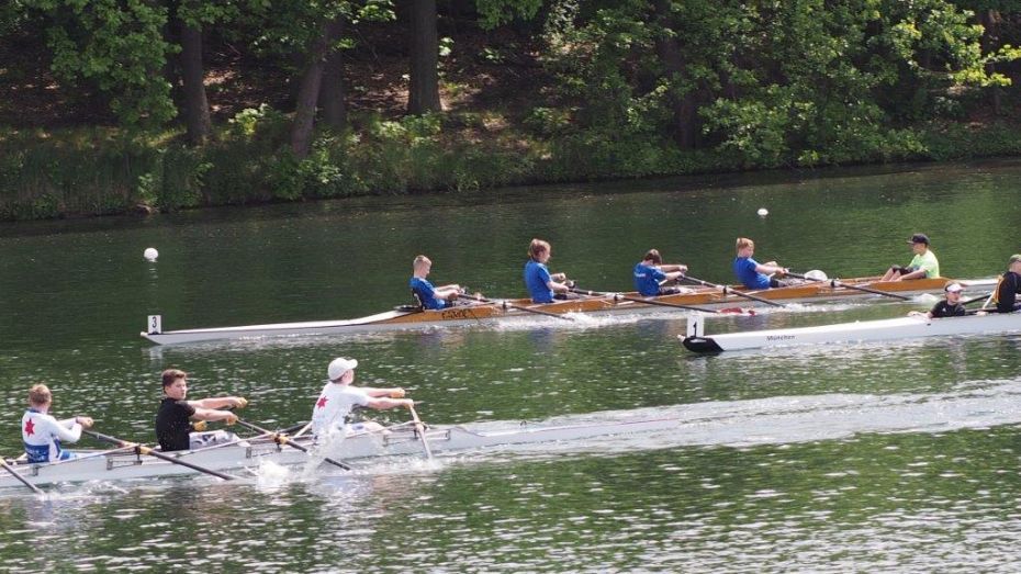 Den Abschluss des Wettkampftages machte der Doppelvierer der Jungen 12/13 Jahre. Hier belegte die Besatzung Noah Duckert, Max Schroeder, Nick Steffen, Lucas Clauß, Stm. Lilly Faye Knuth, nach einem Bootsschaden auf der Strecke, den 4. Platz.