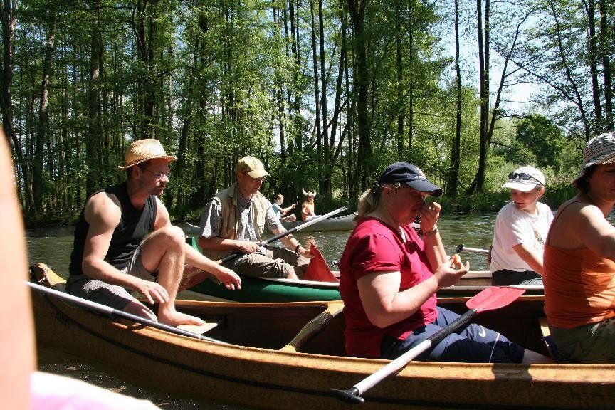Gepaddelt wird in der Gruppe und in allen Altersklassen. Das Tempo wird der jeweiligen Gruppe angepasst. Wir fahren in der Regel Canadier zu dritt oder viert mit Stechpaddeln. Sportliche Gäste können auch mit Kajak und Doppelpaddel die Tour absolvieren.