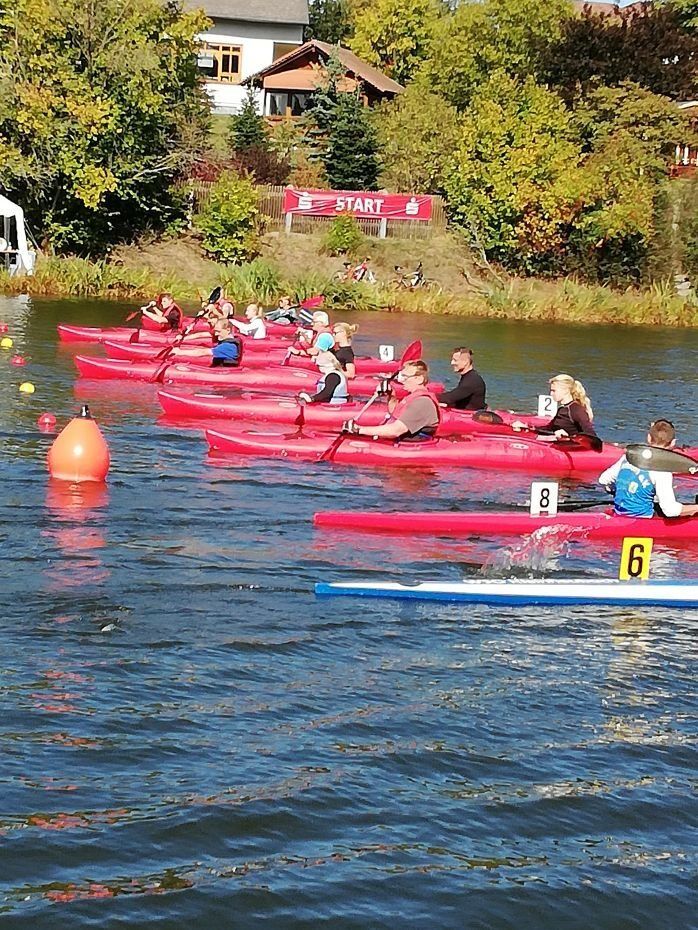 Fast schon traditionell nahmen die „Specials“ unseres Vereins am Saisonkehraus zur Regatta in Hof vom 20. bis 22. September teil. 60 Vereine und fast 1000 aktive Kanuten hatten bei aller bestem Regattawetter die Möglichkeit, bei einem Kanufest die Saison ausklingen zu lassen. Ob Anfänger, Altersklassen Paddler (bis über 70 Jahre!!!), Olympiasieger oder Weltmeister – die Starterfelder auf der 200-m-Strecke waren riesig und immer wieder spannend. Gäste aus der Ukraine, Ungarn, Tschechien, Österreich und der Schweiz vervollständigten die Felder.Alle 2 Minuten erfolgte ein Start auf dem kleinen Quellitzsee bei Tauperlitz/Hof. Zu keiner Zeit gab es eine Zeitverzögerung. Großen Spaß machten vor allem die Staffeln und die Mix-Klassen, die sonst nicht so ausgetragen werden.