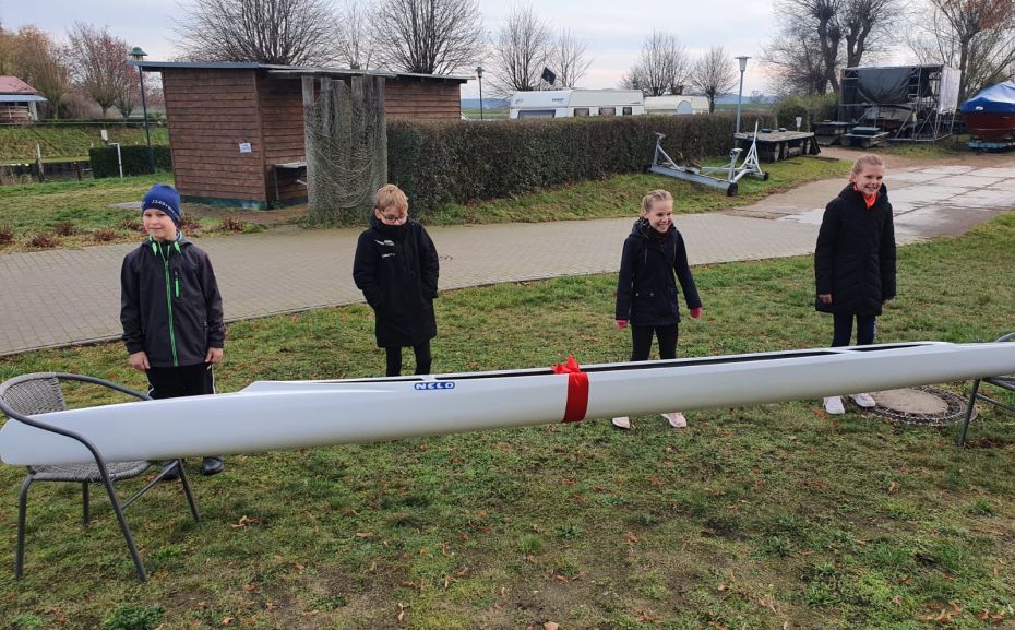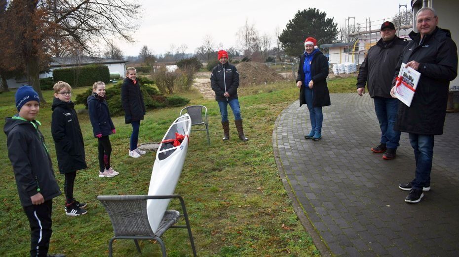 Für vorbildliche Nachwuchsarbeit in der Talentefindung bedankte sich der Landes-Kanu-Verband bei unserem Verein und brachte als Geschenk am Nikolaustag 2020 einen nagelneuen Nelo-Einer-Canadier mit.