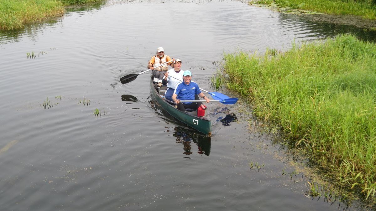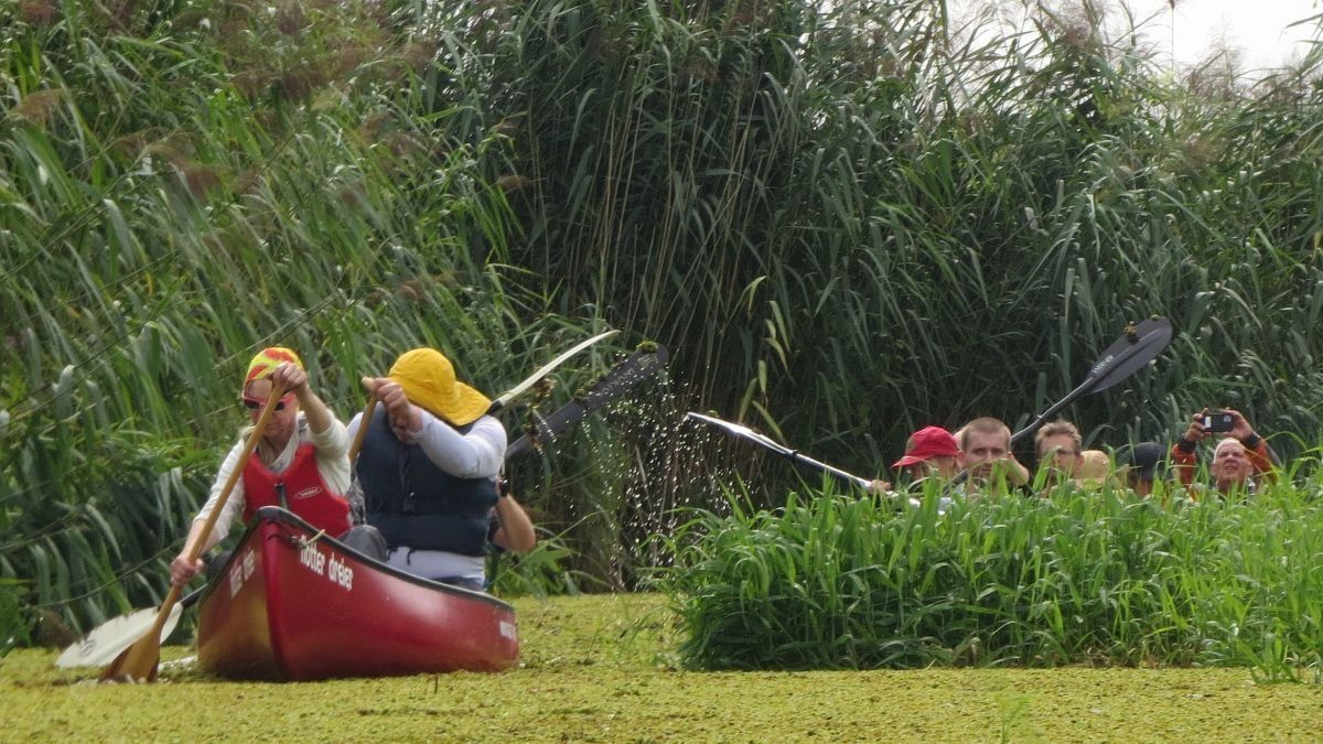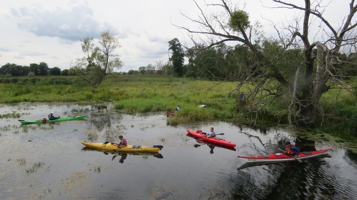 Am Samstag paddeltn wir die Strecke: Wassersportzentrum – HoFrieWa bis neues Schöpfwerk – Sonnabend Umtragen in die Polder – Fitte-See – Wopagsgraben – Meglitze – (ca.23 km) Kreuzlanke – Wrech – Umtragen in die Oder (kurze Pause) – Fahrt bis zur Enkelseeschleuse – Umtragen in den Gatower Polder – Enkelsee – Obere Welse – Querfahrt (Herrenbruch) – Gatow – Pause nach Umsetzen in die HoFrieWa – Rückfahrt zum Bootshaus. Vier Umtragungen waren notwendig. Nach der 24-km-Tour gab es ein leckere Kartoffelsuppe.