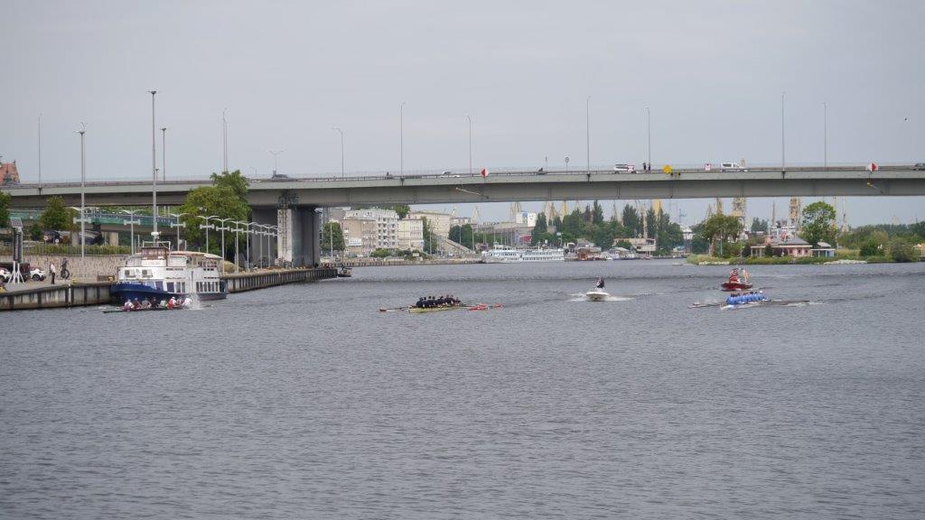 Der Verein AZS Szczecin hatte uns zum 75-jährigen Bestehen der akademischen polnisch-deutschen Ruderregatta eingeladen, welche ausschließlich in Achtern ausgetragen wurde. Am Start waren Mannschaften der verschiedensten Szczeciner Universitäten, die mittels KO-System ihre Sieger im weiblichen und männlichen Bereich kürten.