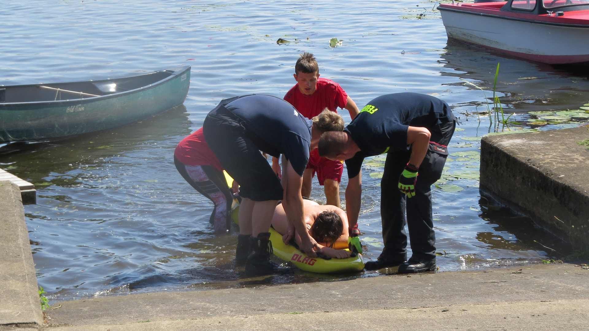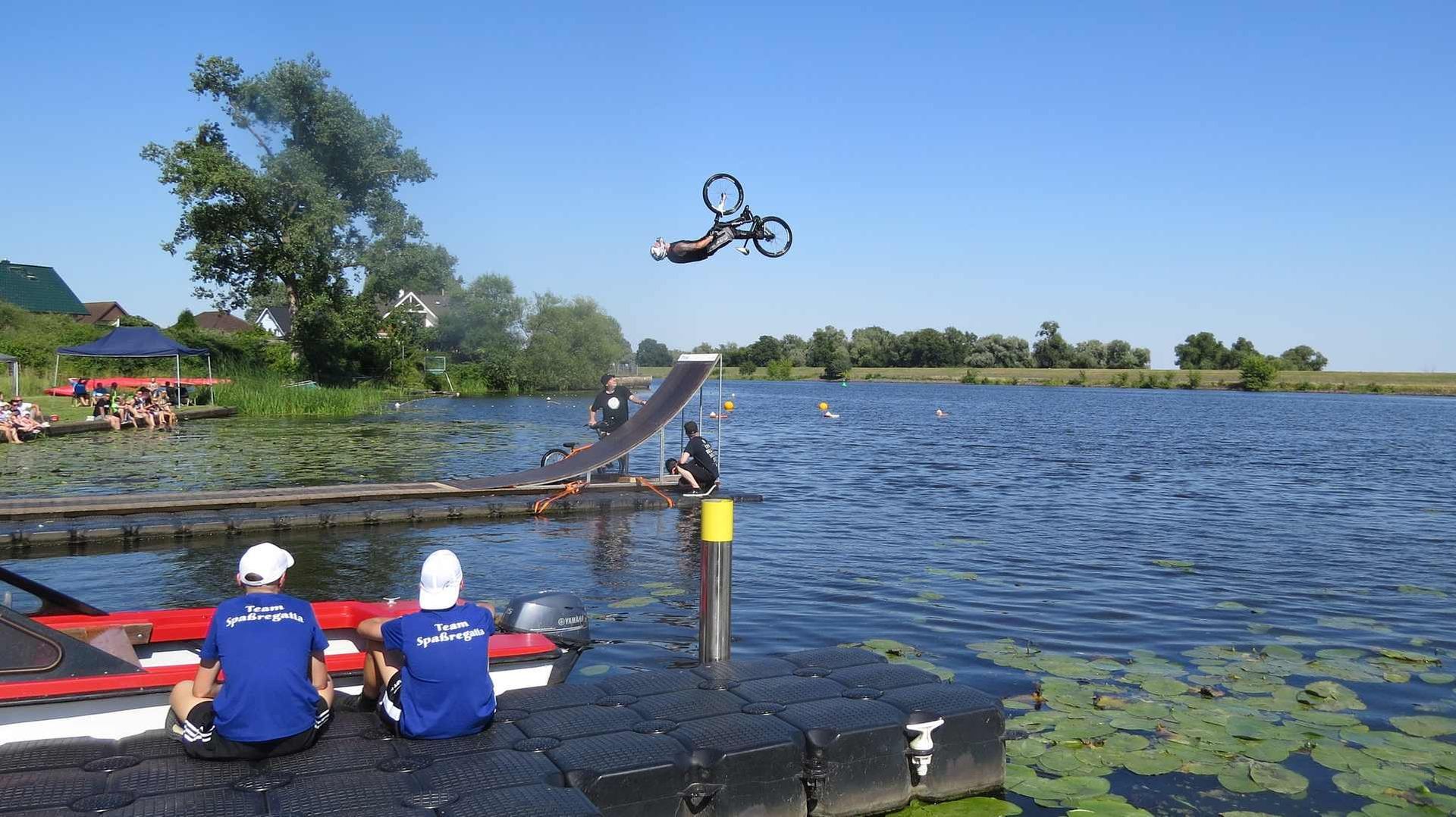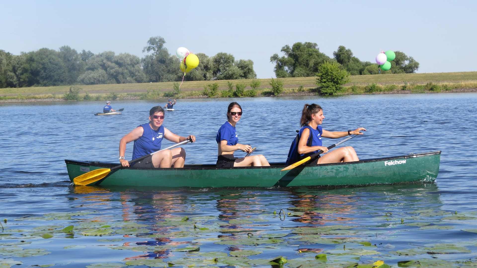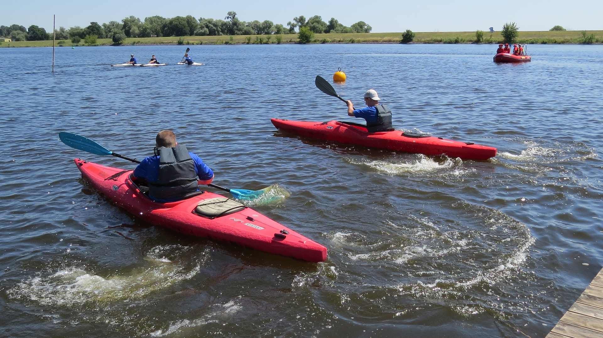 Neben der Spaßregatta mit 19 Mannschaften gab es auch einen Wettkampf unserer Specialkanuten, die BMX-Jumper zeigten ihre waghalsigen Kunststücke mit den Fahrrädern, das Theater Stolperdraht bot traditionell ein Theaterstück für die Kinder, die Feuerwehr war mit ihrem Feuerwehrboot auf dem Wasser. Und zwischendurch wurde noch ein Einatz abgesichert – unsere Hochachtung. Die Freunde der DLRG haben unsere Veranstaltung abgesichert und auch einen Rettungseinsatz vorgeführt. Die Siwa Sweeti drehte mehrere Runden auf dem Kanal. Zwischendurch zeigten einige Kinder aus dem Kitasport, was sie schon gelernt haben. Und wer auf den beiden Springburgen noch nicht genug getobt hatte, konnte mit einem Paddelboot eine Testfahrt machen. Die WOBAG bot Popcorn und Spielfahrzeuge für die Kleinen. Außerdem gab es reichlich Bastel-, Spiel- und Schminkangebote.