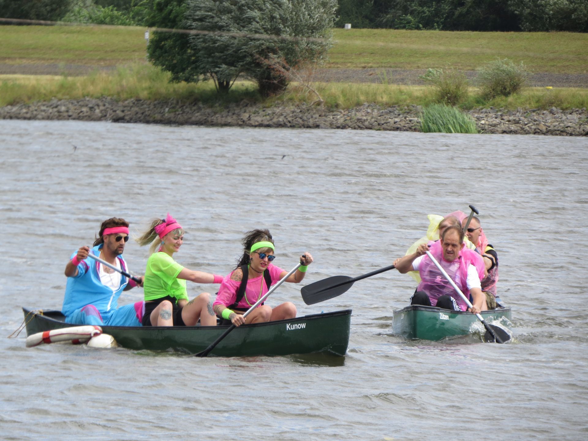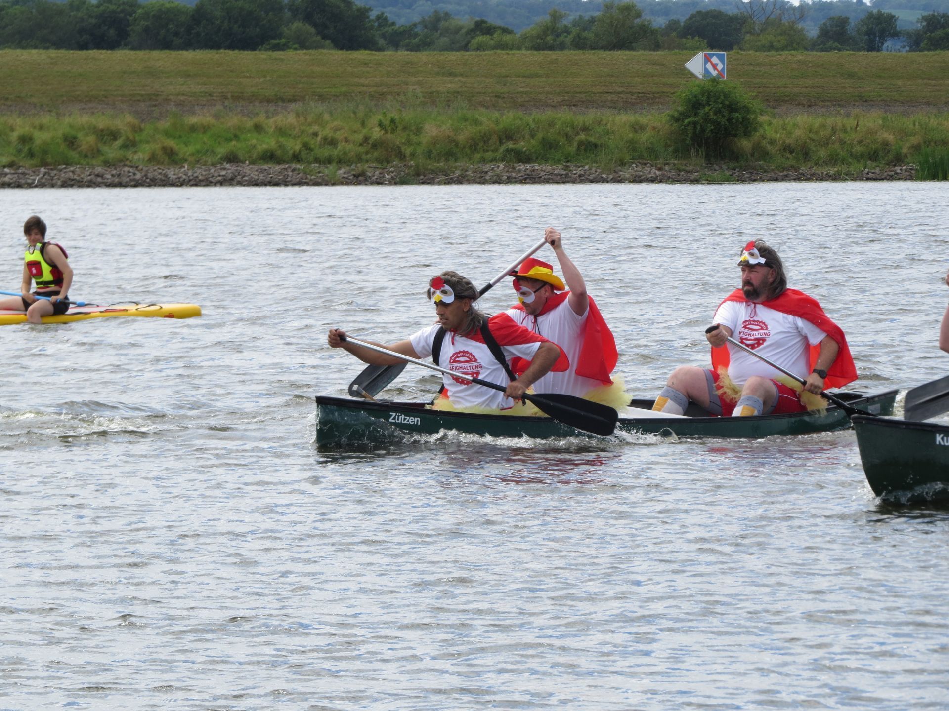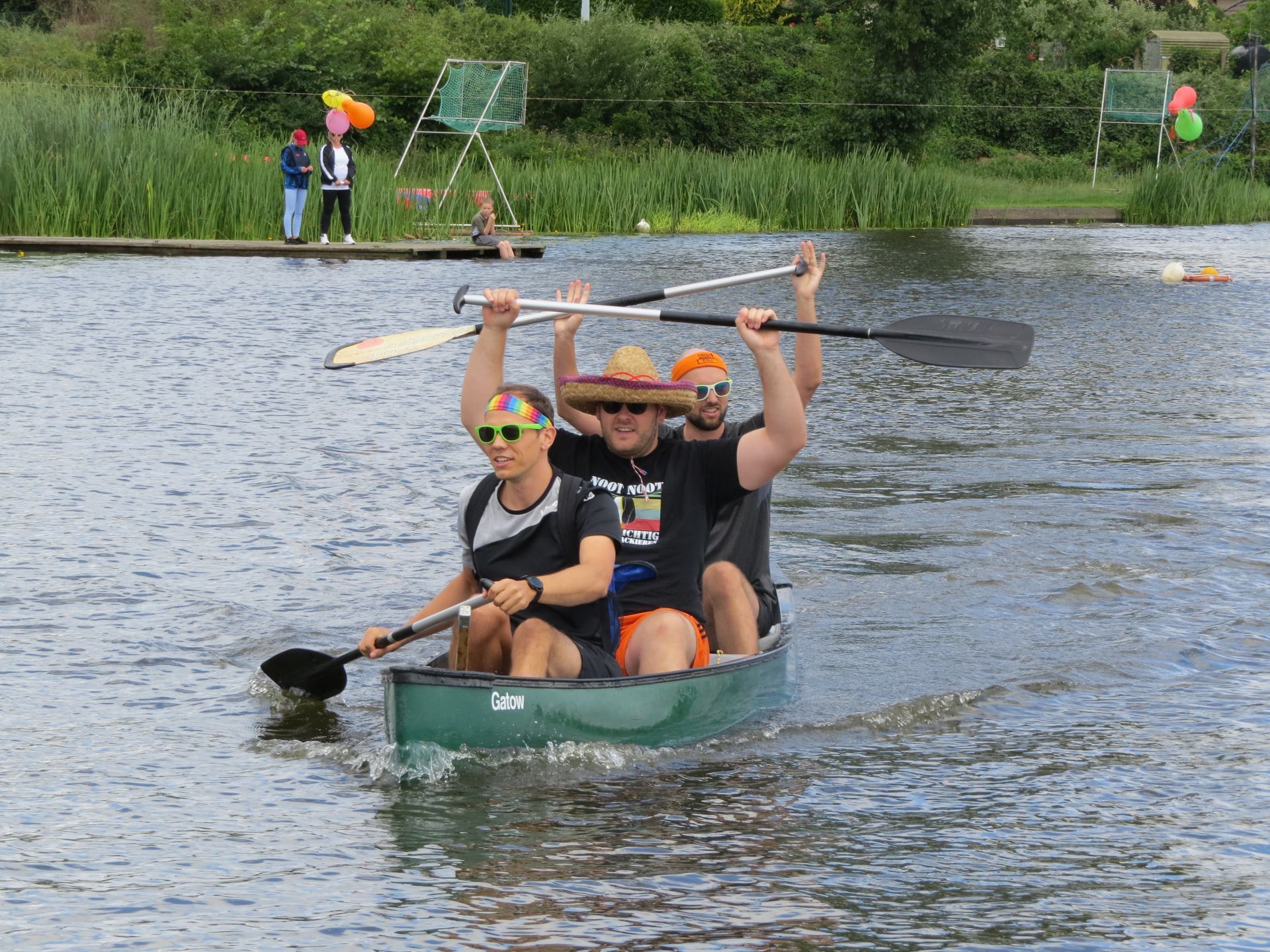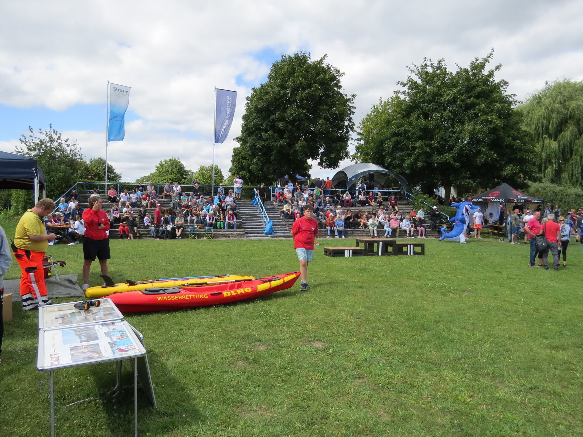 Mit 25 teilnehmenden Mannschaften bei der Spaßregatta, den Inklusionsrennen unserer Specials mit Gästen, der Präsentation der Abteilung Kanurennsport und natürlich den verrückten BMX-Jumpern der Trickfabrik war das Programm auf dem Wasser schon sehr attraktiv.