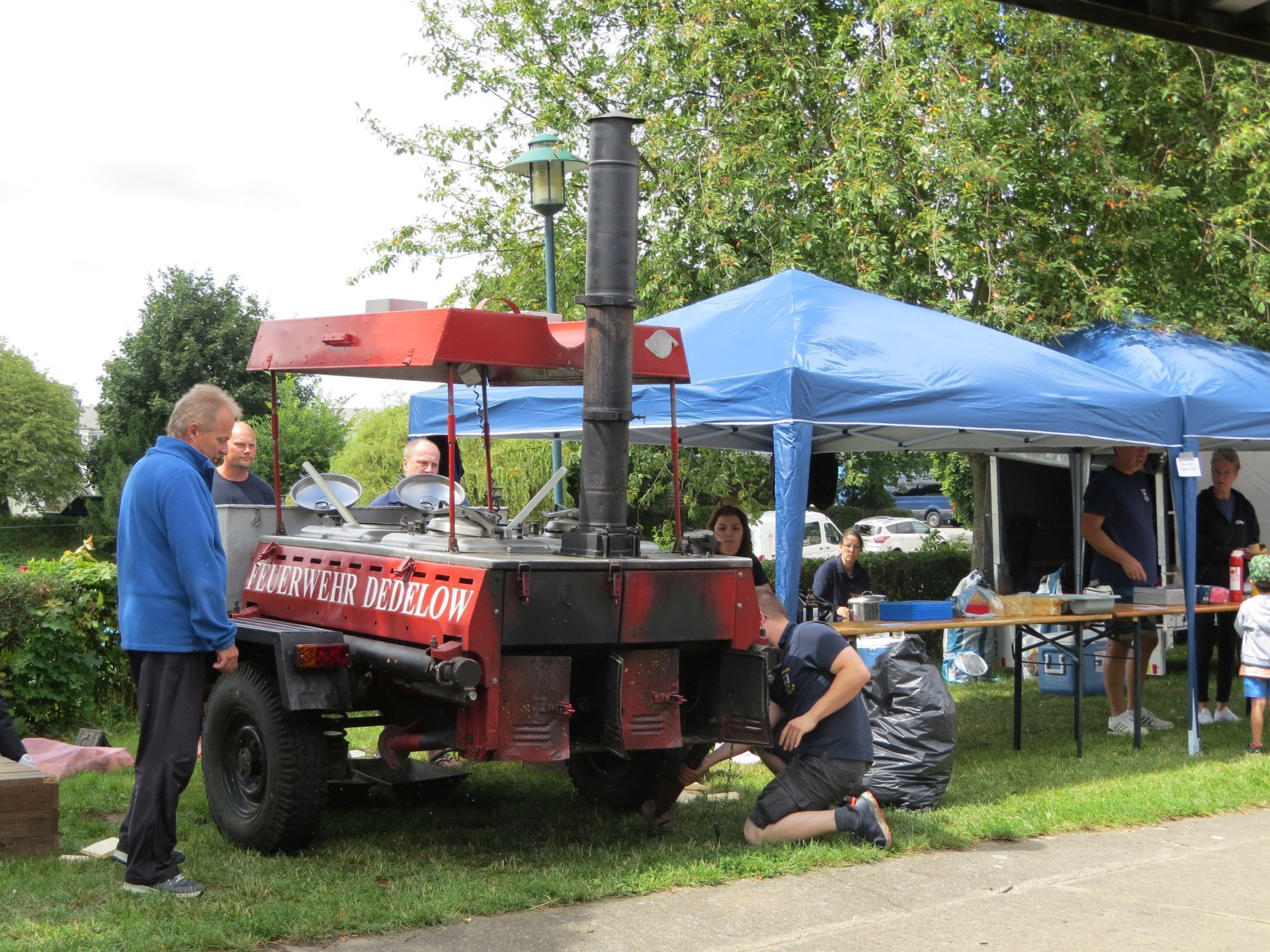 Für das leibliche Wohl sorgten die Feuerwehr Dedelow mit der Gulaschkanone sowie die Sportfreunde des Vereins am Bratwurststand, am Kuchenbasar und auf dem Bierwagen.