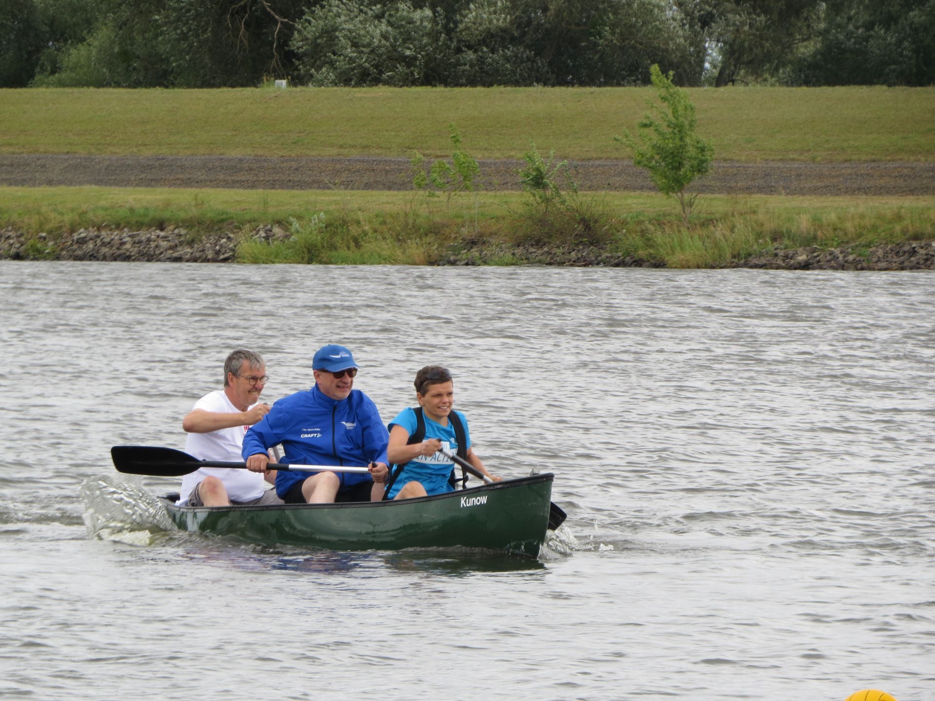 Das VIP-Rennen gewann diesmal das Boot „Wirtschaft“ mit Jana Jähnke (Stadtwerke), Dr. Achim Aschmoneit (PCK) und Volker Englert (MAX Holzbau). Die „Politik“ mit Ulf Parpart-Hergesell (ubs), Hardy Lemke (KSB) und Sportfreund Neumann (DLRG) waren bis kurz vor der Ziellinie ein starker Gegner. Das Boot „Kultur“ mit den toll kostümierten Schauspielern der Uckermärkischen Bühnen mussten sich erst kurz vor dem Ziel geschlagen geben.