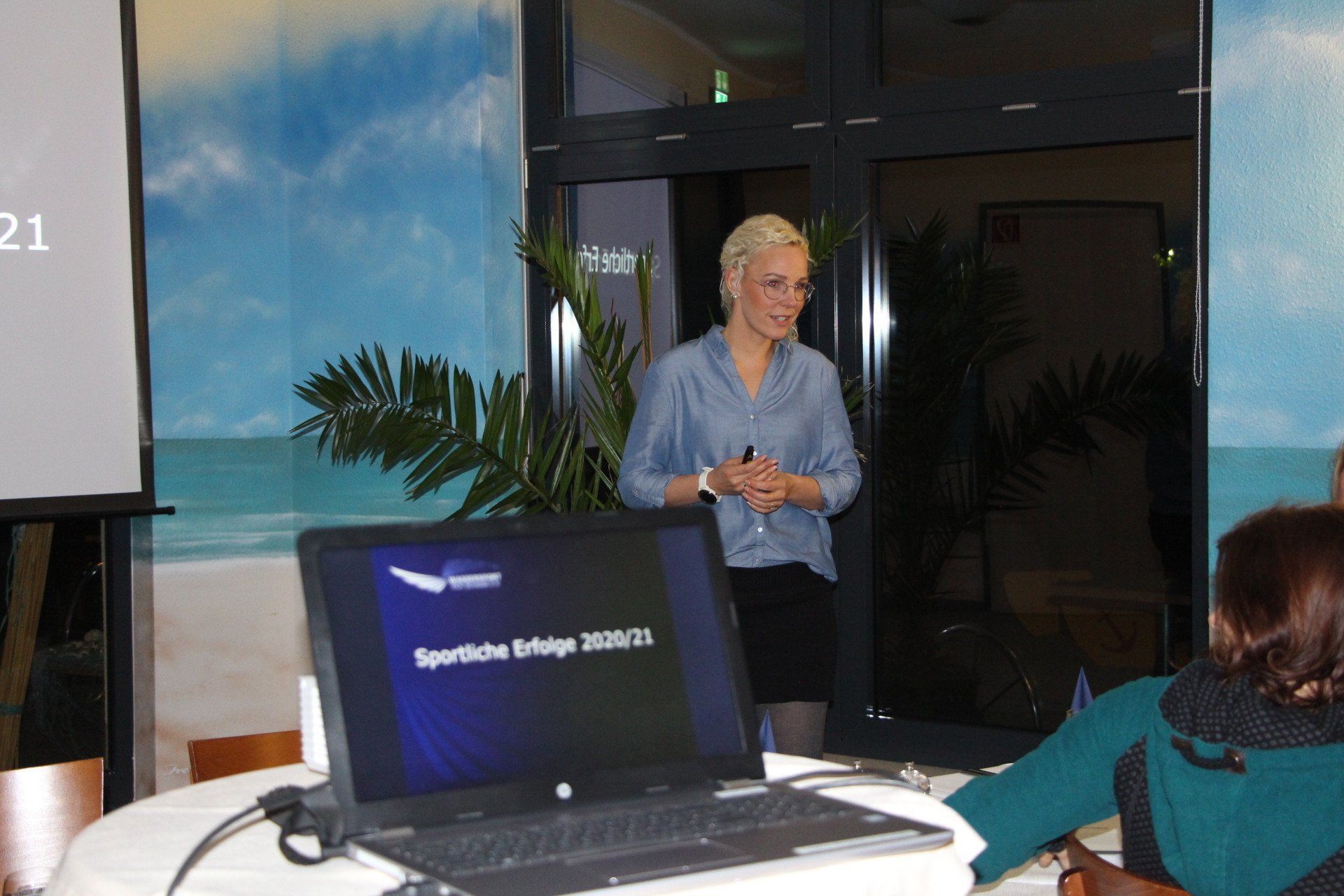 Volker Englert brachte in bewährter Weise einen reichbebilderten Abriss der Veranstaltungen und Aktivitäten des Vereines zum Vortrag. Sandra Leyba ergänzte den Ergebnisbericht um die sportlichen Erfolge. Dazu richtete Gerhard Bowitzky noch ein paar Dankesworte an alle beteiligte Sponsoren, die es ermöglicht hatten, die Reise nach Halifax zur Kanu-WM zu finanzieren.