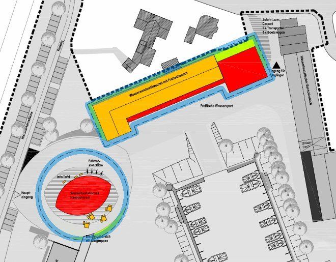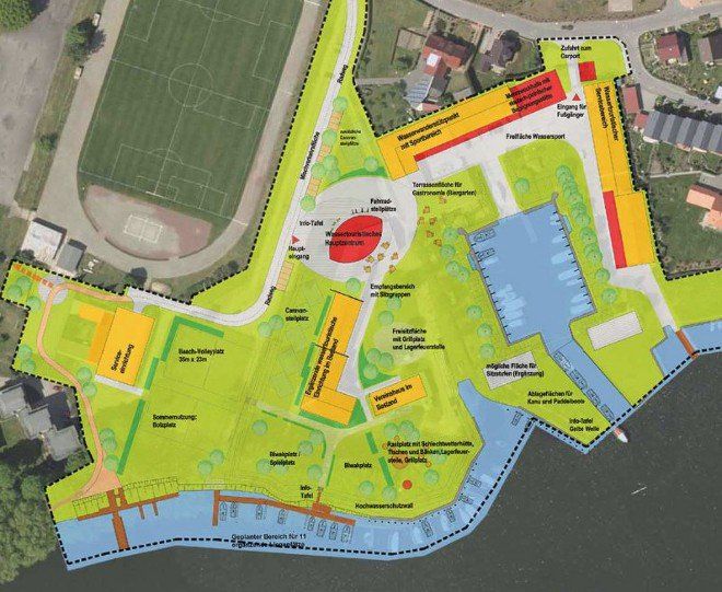 Am 26. April 2012 wurde der Grundstein für den Neu- und Umbau des Wassersportzentrums gelegt. Bürgermeister Jürgen Polzehl, der Vorsitzende der Stadtverordnetenversammlung Jochen Bismark und ein Vertreter des polnischen Projektpartners aus Gryfino versenkten die vorbereitete Hülse. Zahlreiche Gäste, Sportler, Anlieger, Vertreter aus Politik und Verwaltung sowie eine Delegation aus Gryfino erlebten die Zeremonie.