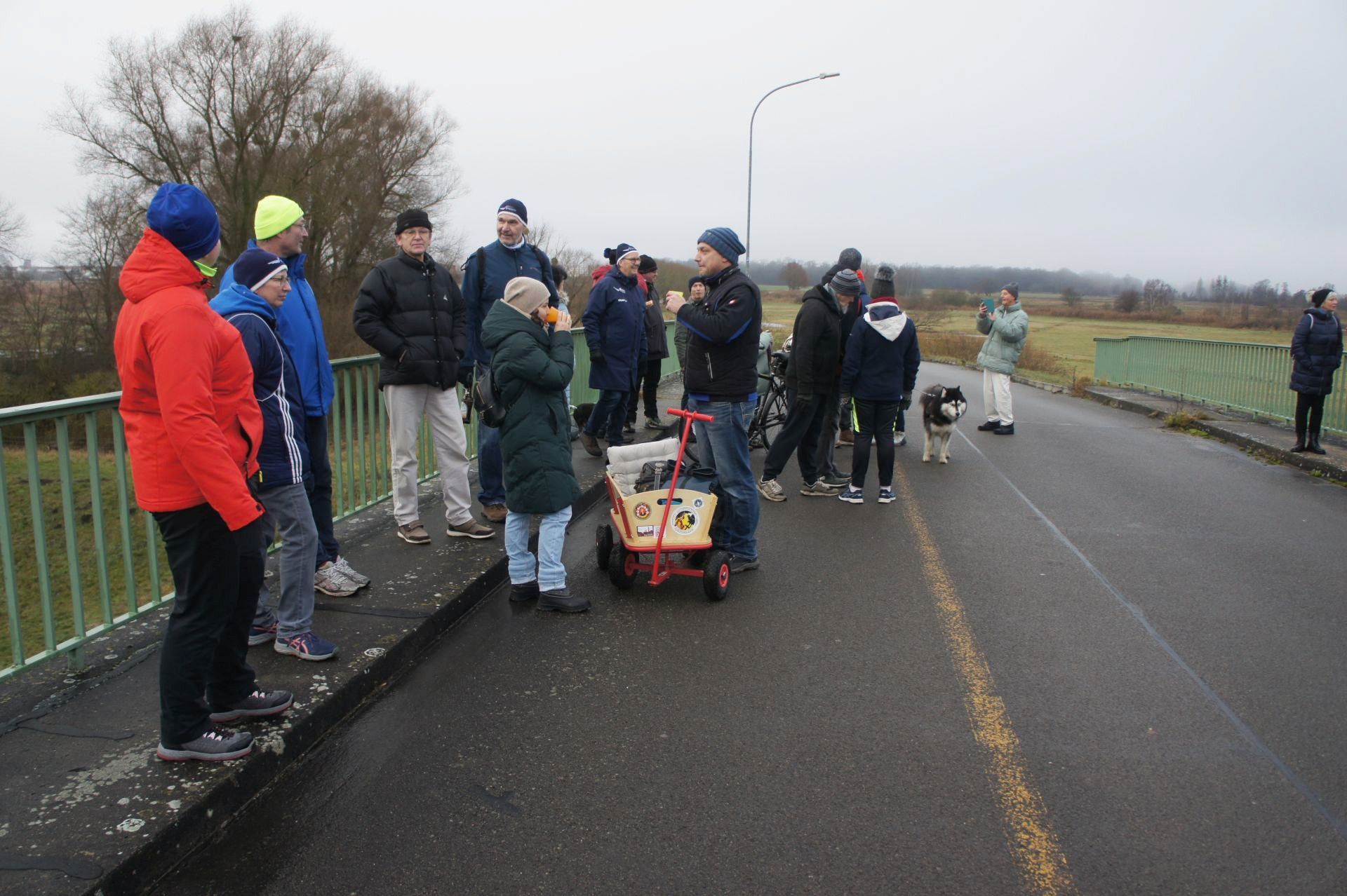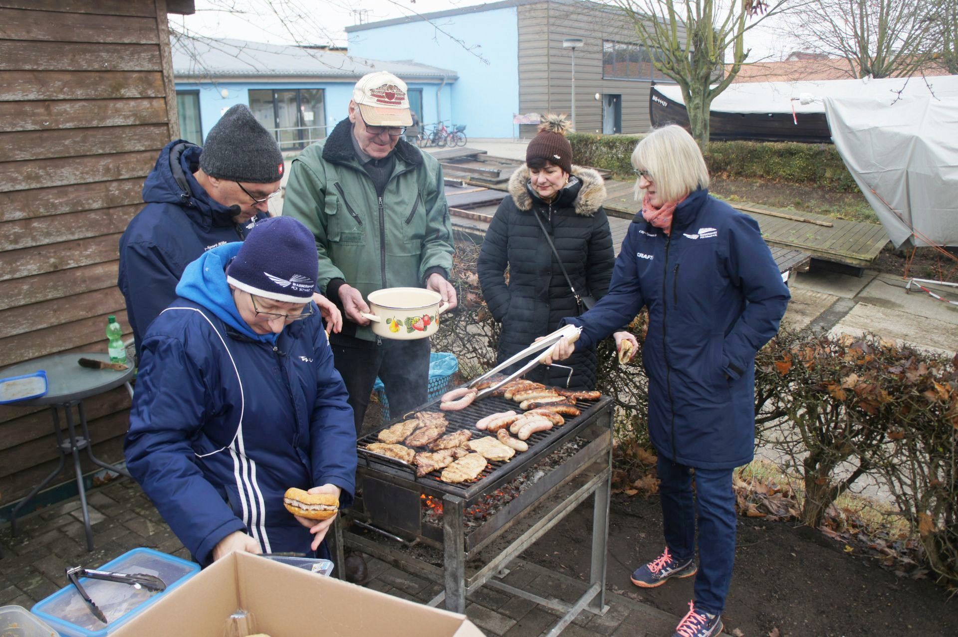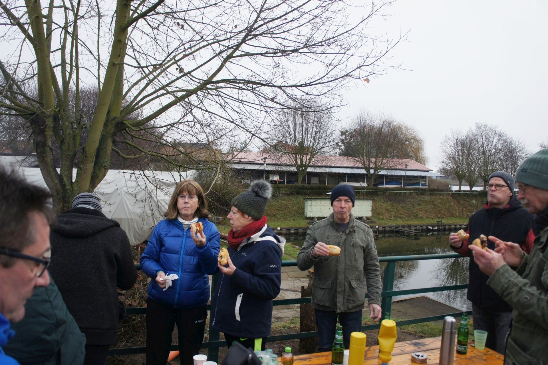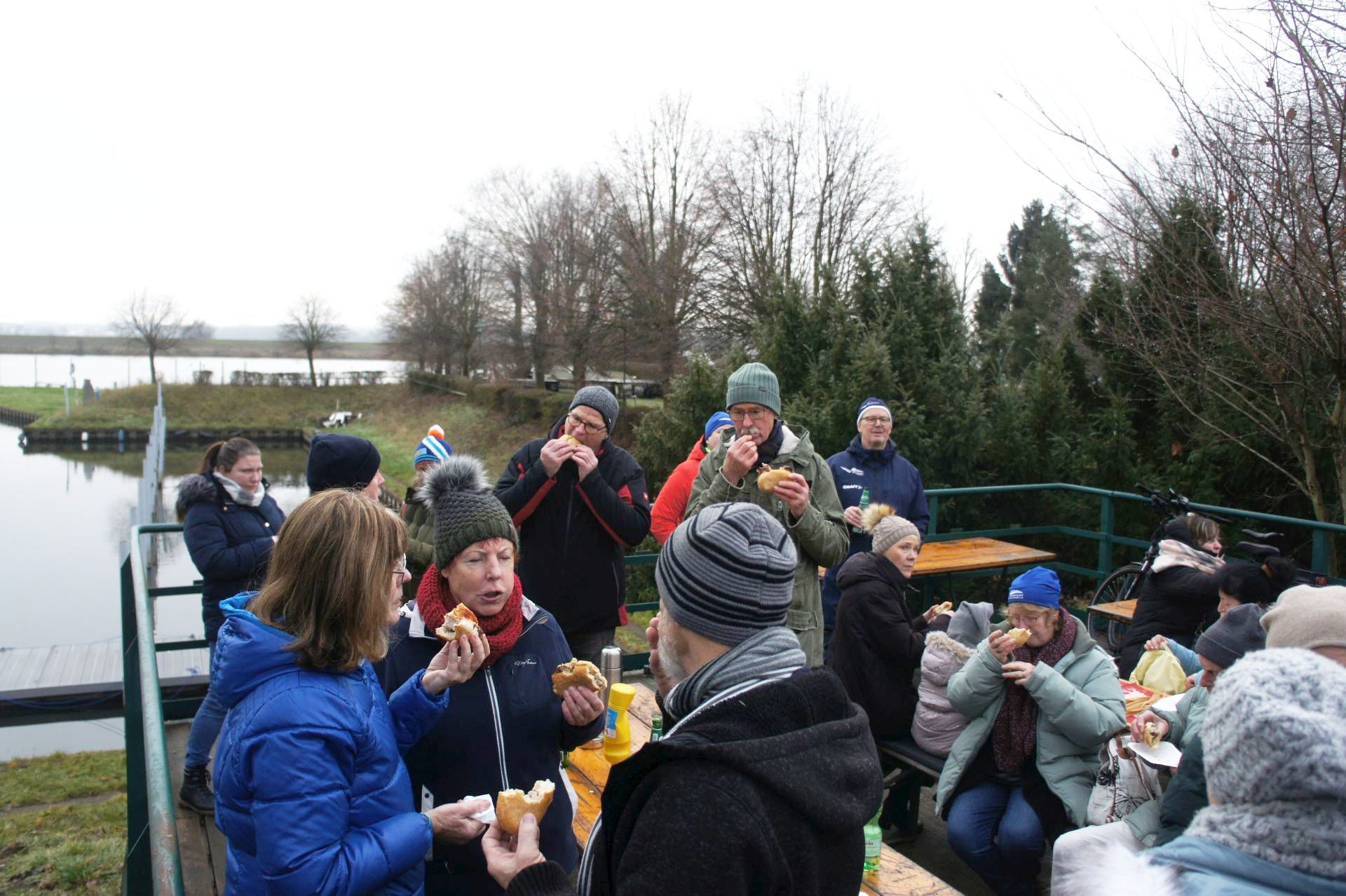 Samstag, 9:30 Uhr trafen sich Mitglieder aus allen Abteilungen zur traditionellen Weihnachtswanderung auf dem Vereinsgelände, insgesamt 38 Erwachsene und drei Kinder. Nach dem obligatorischen Gruppenfoto startete die Wanderung in Richtung Schleuse. Auf dem Deich führte die Route über die Stadtbrücke zurück auf´s Vereinsgelände. Diesmal war es ziemlich neblig, aber trocken. Im Anschluss trafen sich alle am neuen Vereinsclubhaus zu Gegrilltem und Glühwein. Danke Reni und Jens für die Vorbereitungen!
