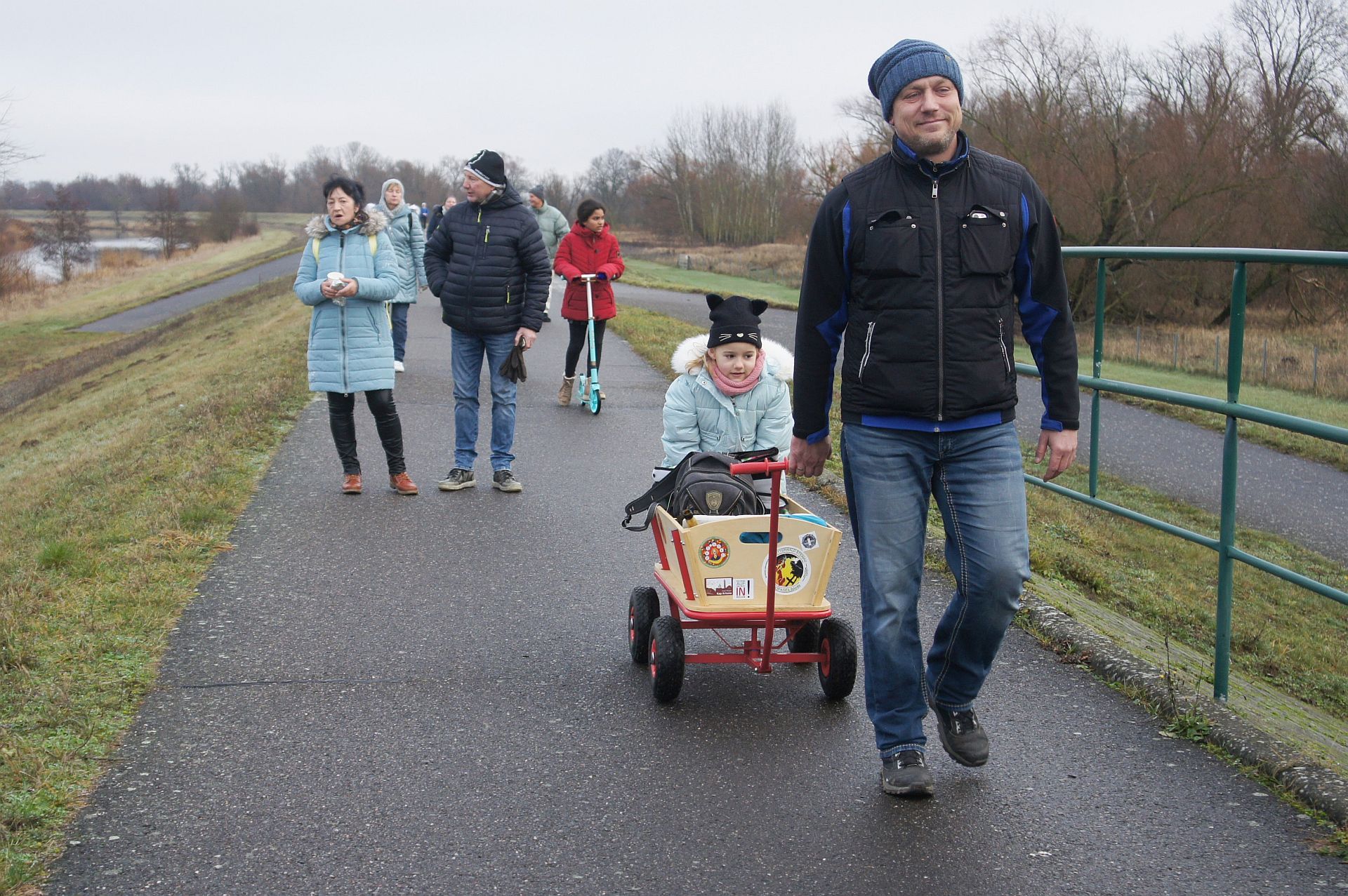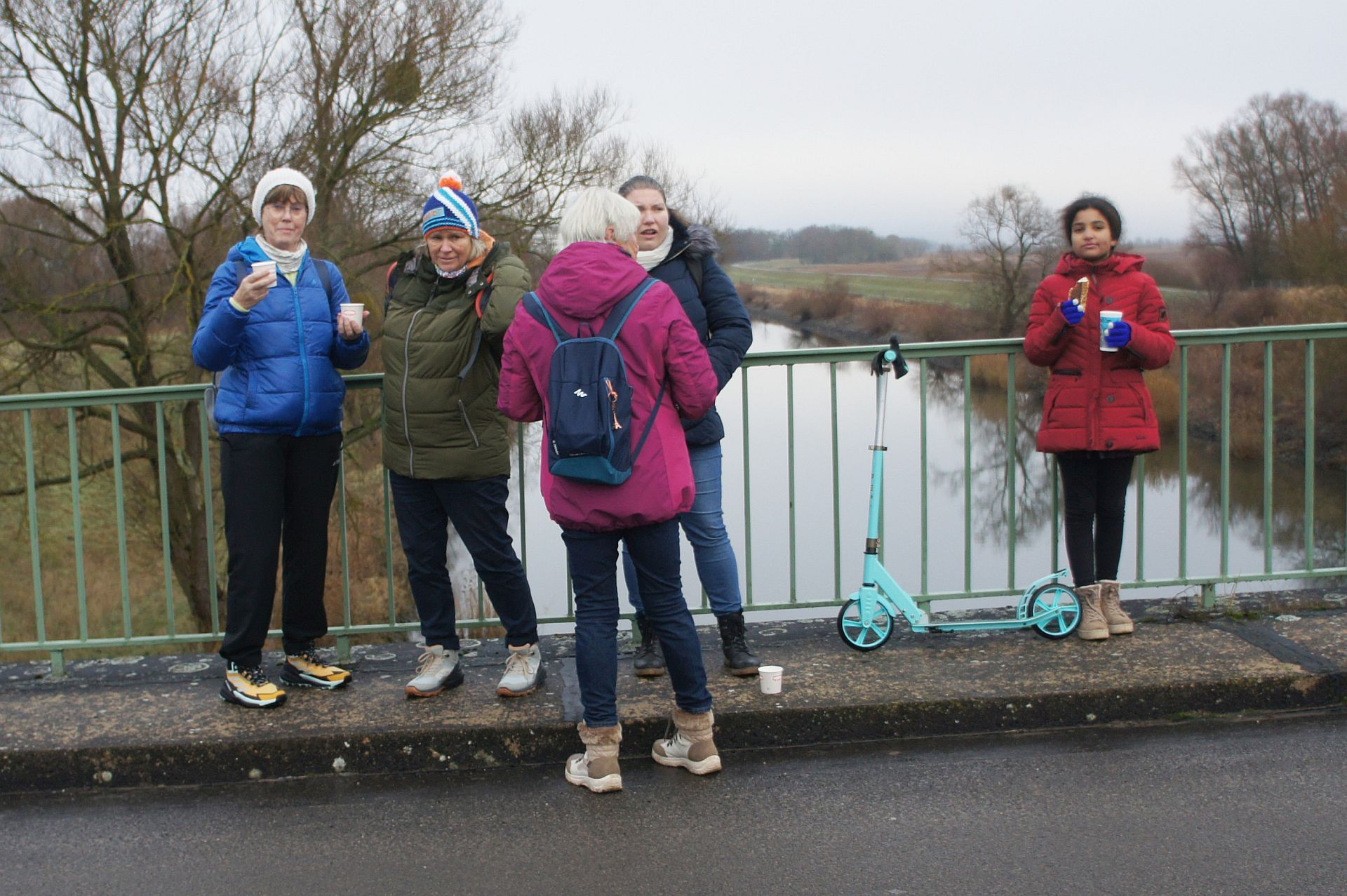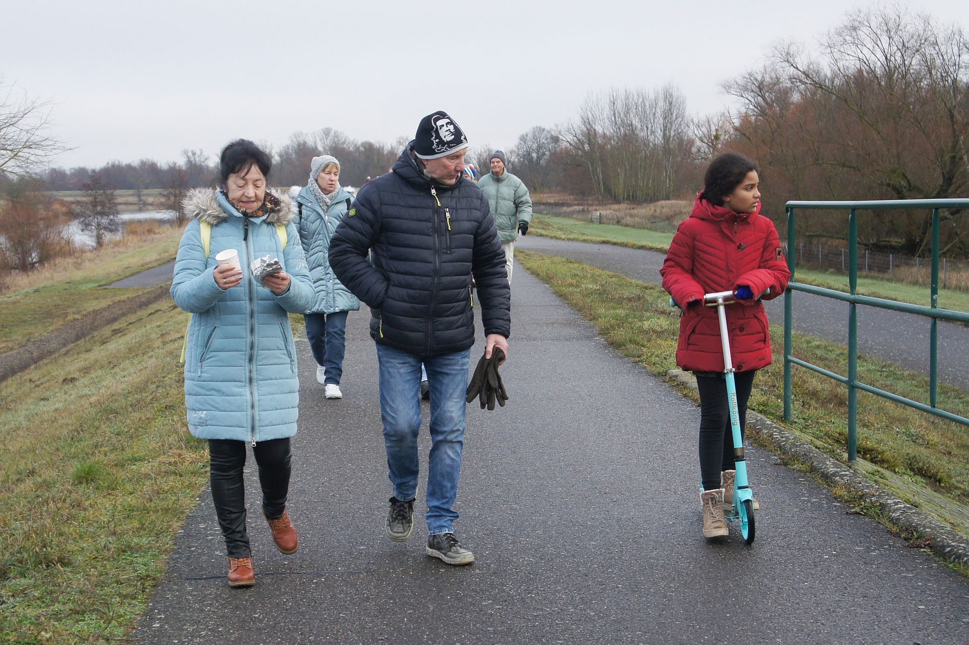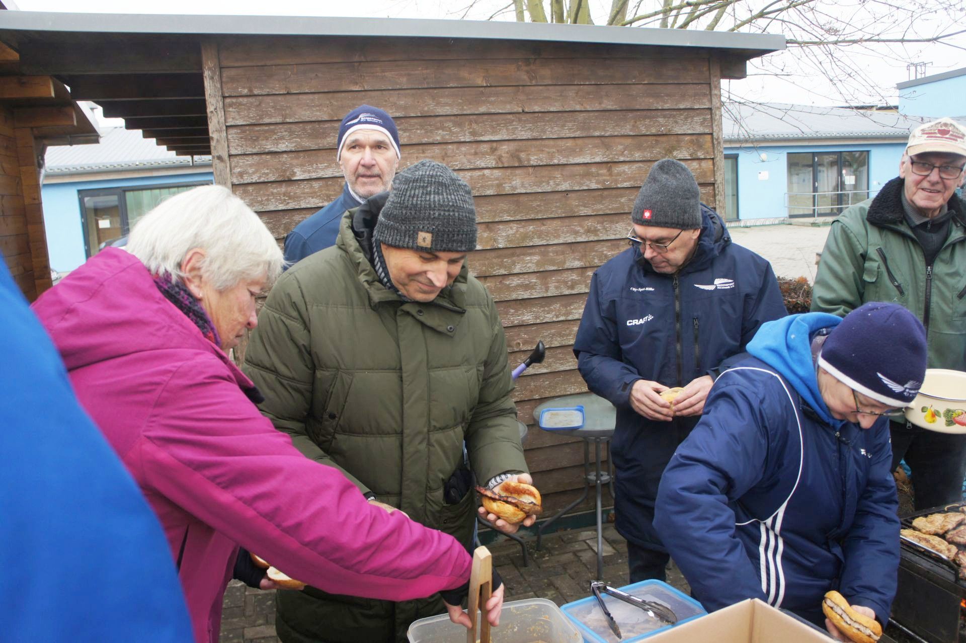 Samstag, 9:30 Uhr trafen sich Mitglieder aus allen Abteilungen zur traditionellen Weihnachtswanderung auf dem Vereinsgelände, insgesamt 38 Erwachsene und drei Kinder. Nach dem obligatorischen Gruppenfoto startete die Wanderung in Richtung Schleuse. Auf dem Deich führte die Route über die Stadtbrücke zurück auf´s Vereinsgelände. Diesmal war es ziemlich neblig, aber trocken. Im Anschluss trafen sich alle am neuen Vereinsclubhaus zu Gegrilltem und Glühwein. Danke Reni und Jens für die Vorbereitungen!