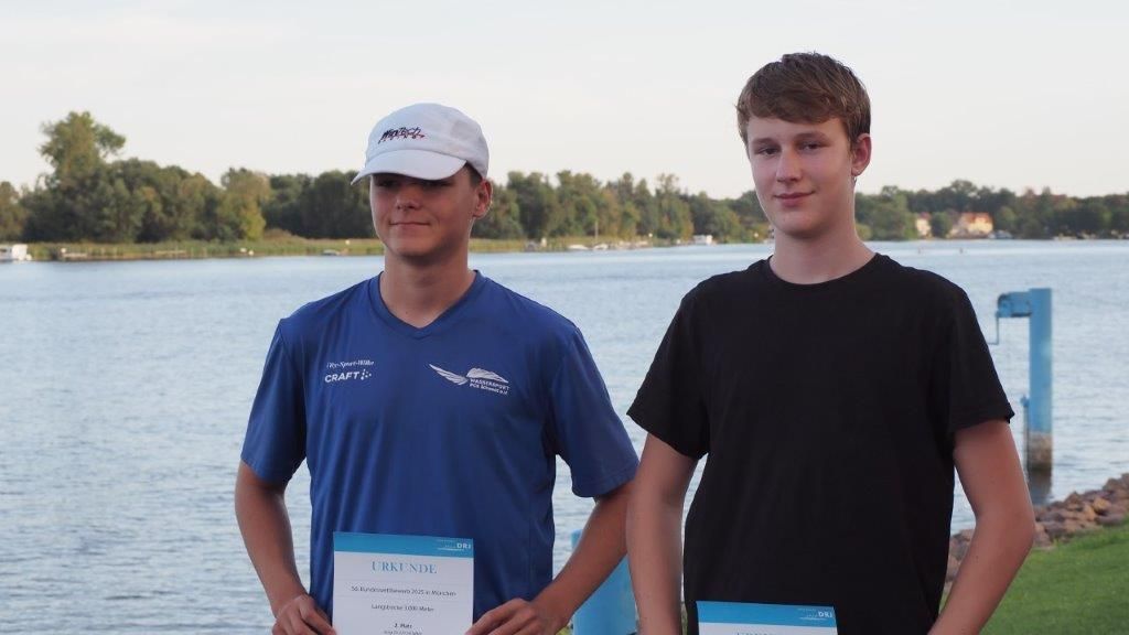 Marie Manthey machte es noch besser als ihr Bruder. Sie wurde im Finale Zweite hinter einer Ruderin aus Estland und errang damit den ersten und einzigen Landesmeistertitel für die Schwedter. Ida Kapruziak belegte im Anschluss Platz 2 im B-Finale. Im nachfolgenden Doppelzweier der 13-/14-jährigen Jungen konnten sich Collin Bonin und Maximilian Manthey über einen sehr guten 2. Platz und damit die Silbermedaille freuen.